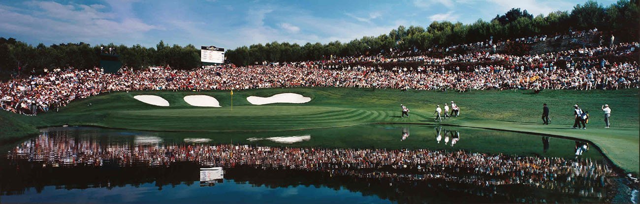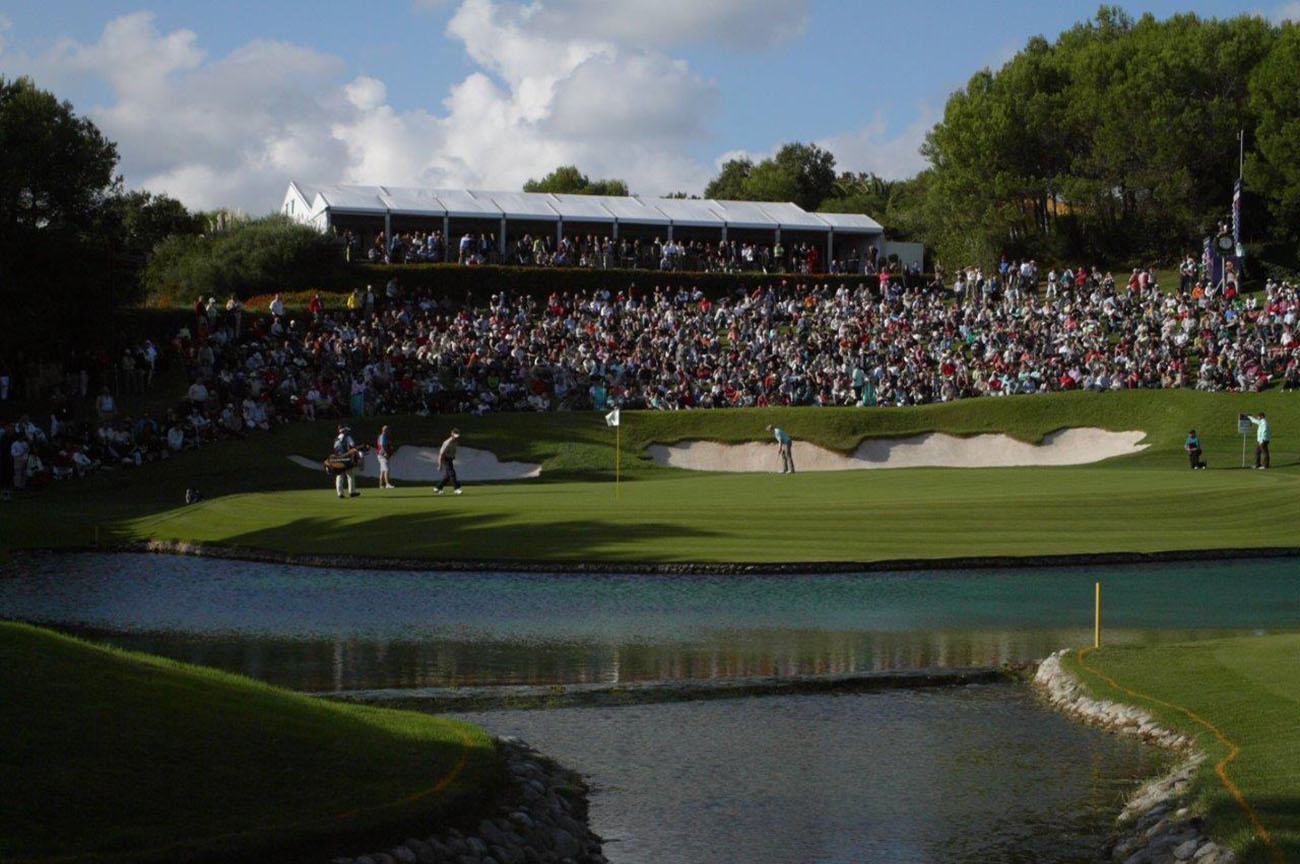 A Ryder Cup hole. Seve Ballesteros had redesigned #17 for the 1993 Volvo Masters, and none knew better than the Spanish Captain that it would be the crucial hole of the 1997 Ryder Cup. One of the turning points of the event was Nacho Garrido’s fabulous bunker shot during the Saturday morning fourballs. His partner, José María Olazábal recalls: “The key moment was on 17 when we were really struggling against Phil Mickelson and Tom Lehman. Nacho’s second was bunkered past the green while Phil had hit a superb shot to six feet. Nacho’s bunker shot was amazing; the best bunker specialist couldn’t have done it in a hundred tries. He made his putt and Phil missed, so we halved that hole and eventually halved the match. It was an incredible moment.”