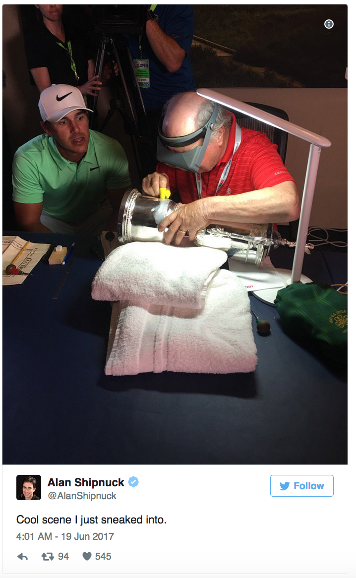Koepka, who by virtue of his victory moved to 10th in the World Ranking, can seem unaffected to the point of being aloof, but on Sunday night, in a small room in the corner of a large white tent that was serving as a temporary locker room, he finally let down his guard. He was sitting at the elbow of a gray-haired gent who was engraving KOEPKA onto a trophy already adorned with so many glittering names.